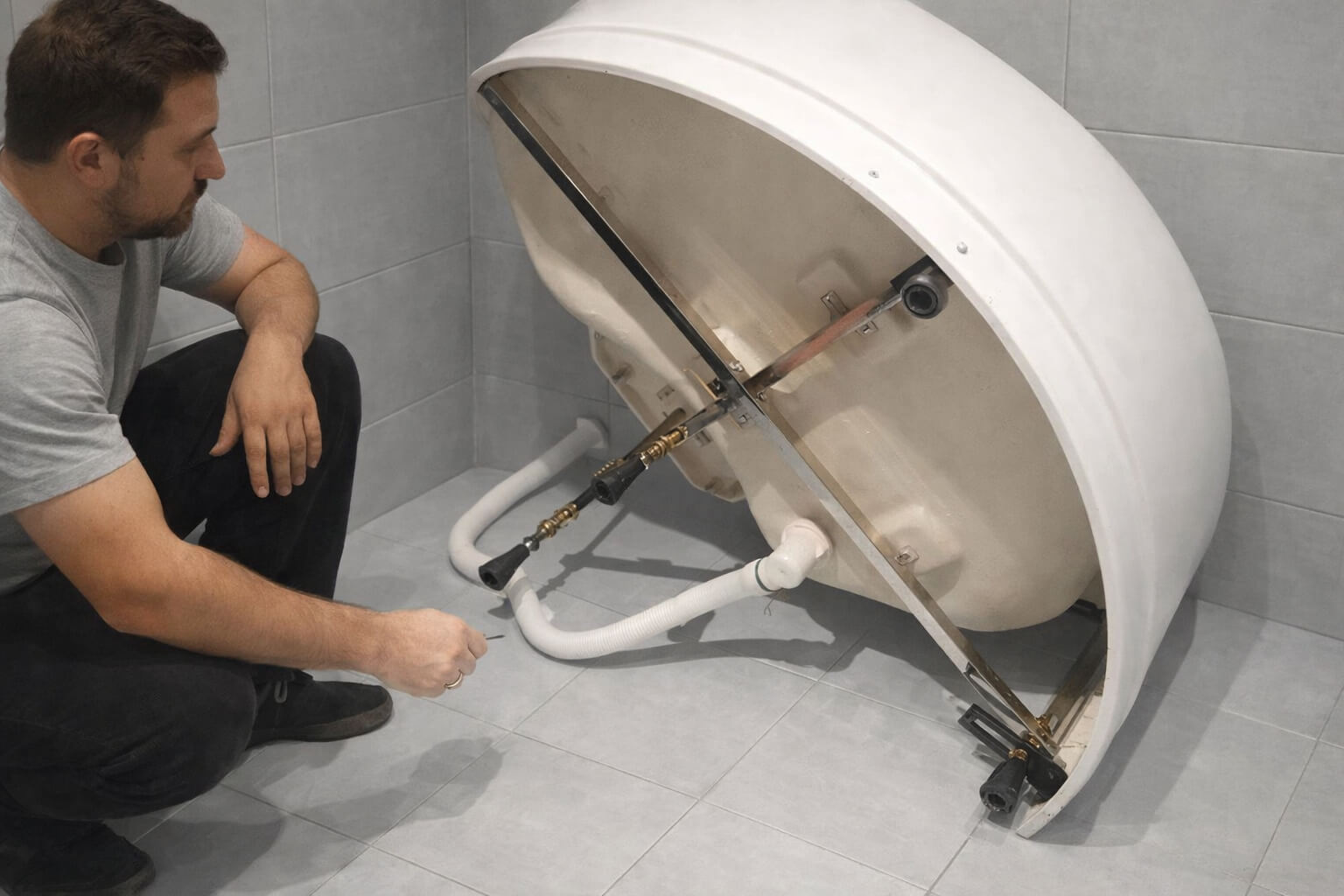 Процесс демонтажа душевой кабины включает несколько этапов, которые выполняются мастером: